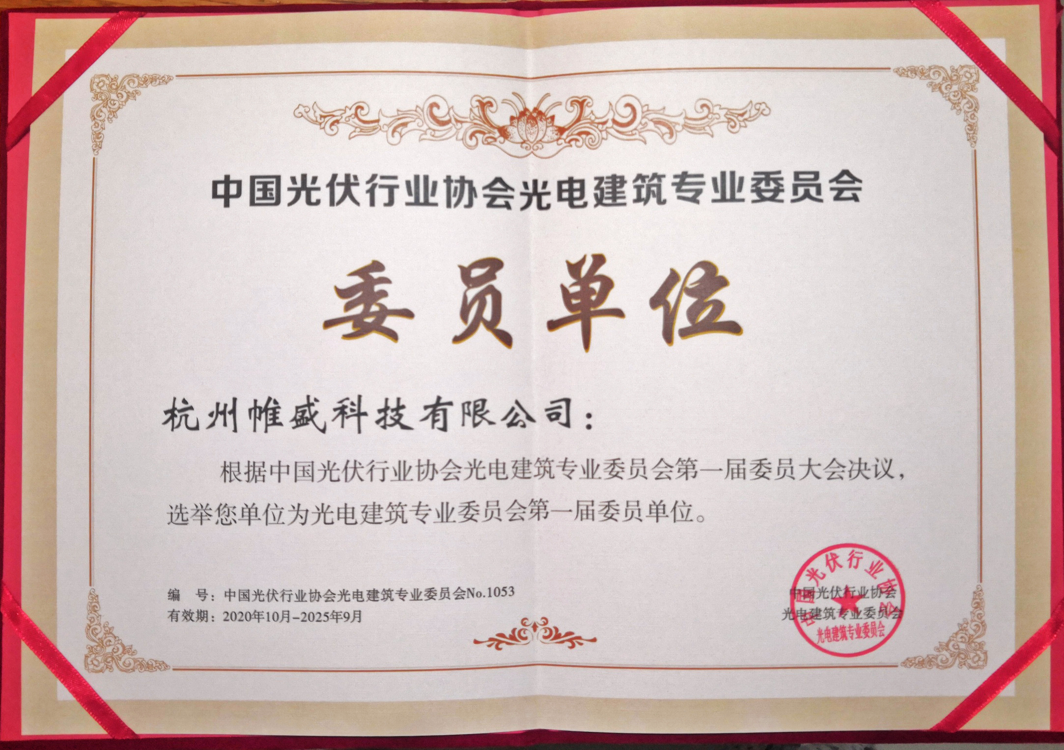 此次能榮幸成為光電建筑專(zhuān)業(yè)委員會(huì)第一屆委員單位,與專(zhuān)委會(huì)及所有會(huì)員單位攜手,持續(xù)推進(jìn)深化光伏建筑發(fā)展,深度服務(wù)成員單位,致力于光伏行業(yè)健康,優(yōu)質(zhì)發(fā)展,促使光電建筑更加深入人心,為光伏與建筑融合的推廣和應(yīng)用貢獻(xiàn)帷盛的經(jīng)驗(yàn)與智慧。杭州帷盛未來(lái)將始終堅(jiān)持技術(shù)創(chuàng)新的發(fā)展理念,整合國(guó)內(nèi)外最優(yōu)秀的技術(shù)資源,引領(lǐng)行業(yè)發(fā)展。